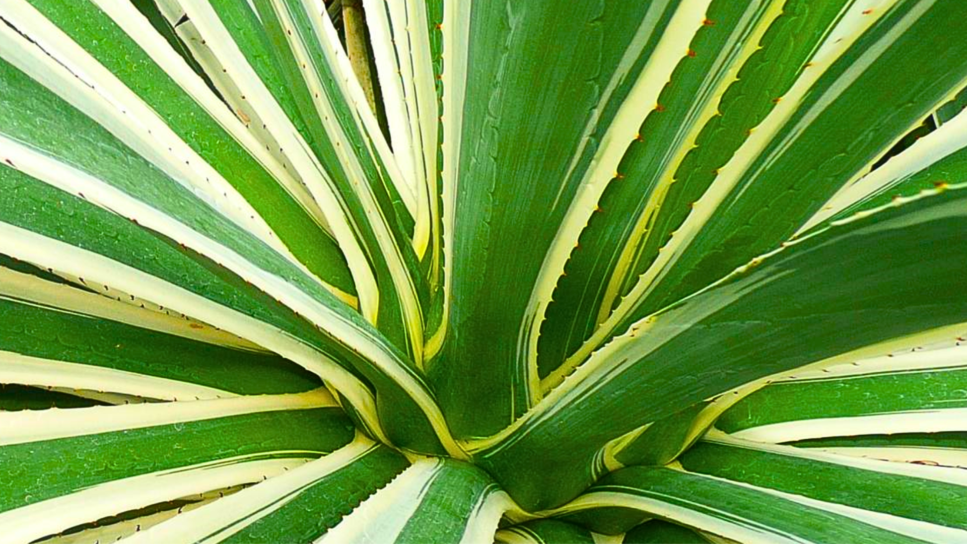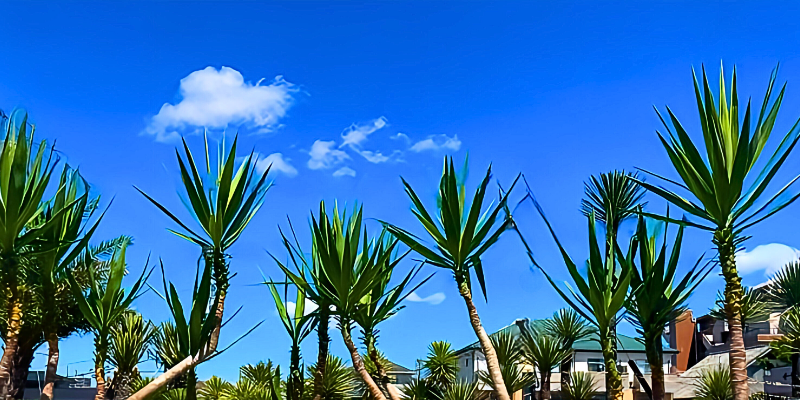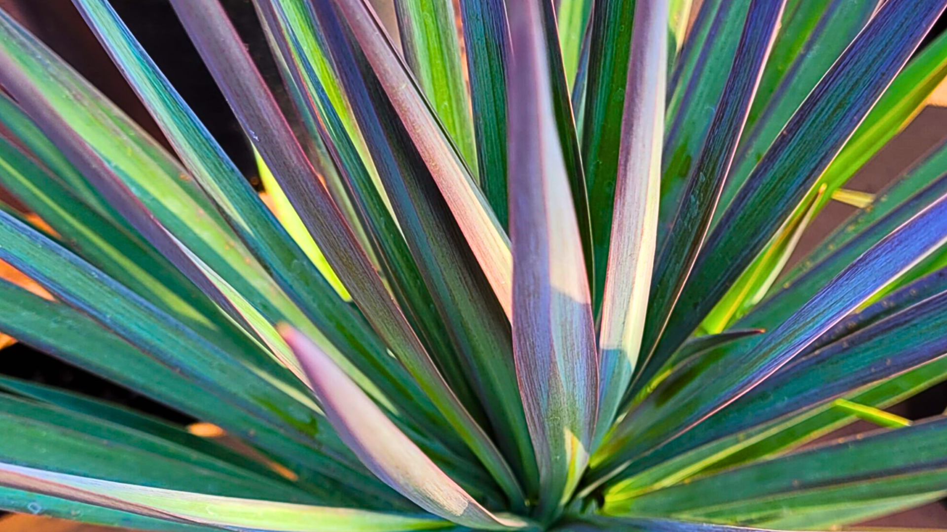 放射状に広がるシルバーブルーの葉がとても美しいユッカロストラータ