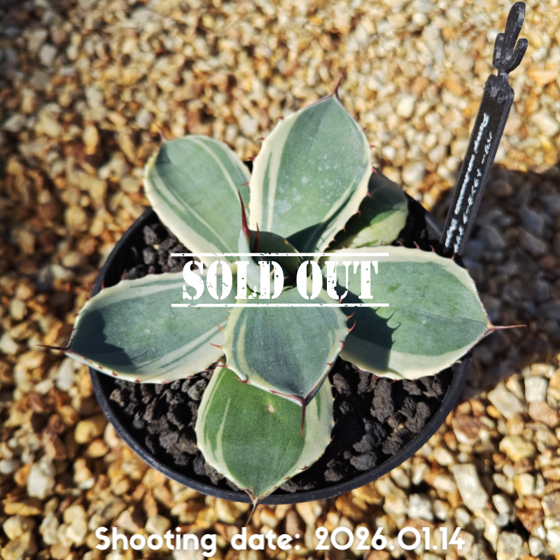 白から黄色掛かった明瞭な斑が特徴のアガベです