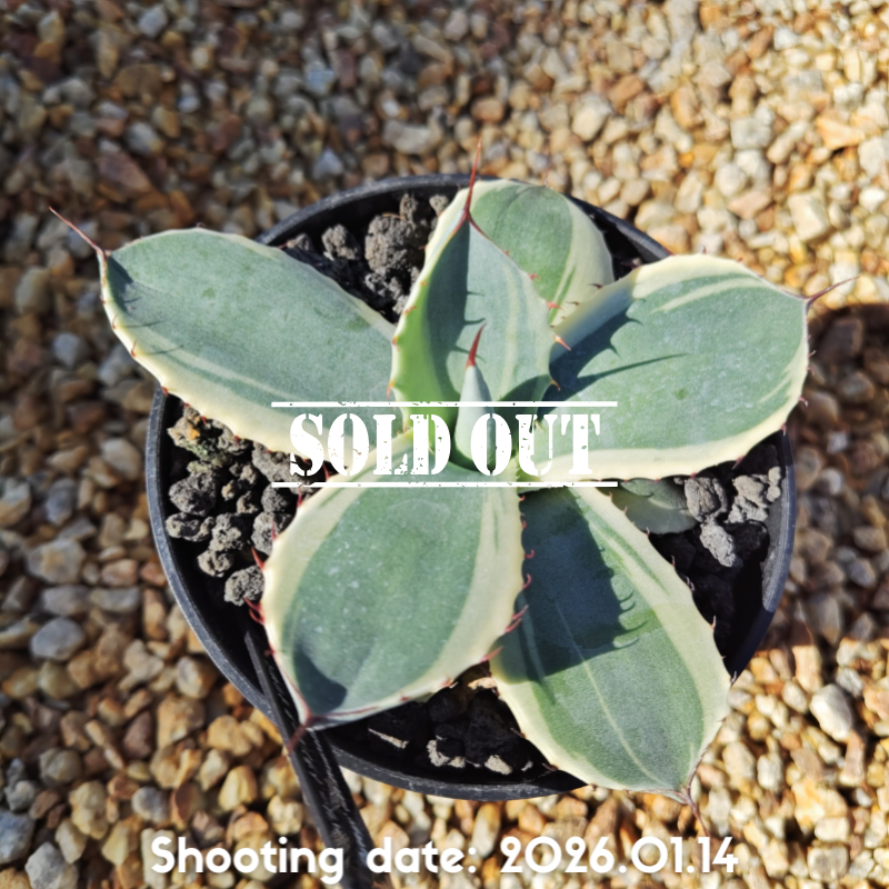 白から黄色掛かった明瞭な斑が特徴のアガベです