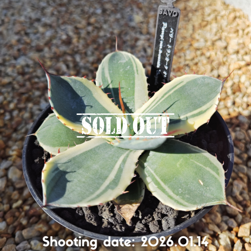 白から黄色掛かった明瞭な斑が特徴のアガベです