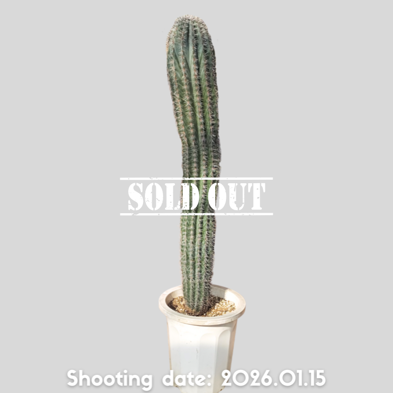 濃緑から灰緑色の肌と長さの揃った刺を持つ美しい柱サボテンです
