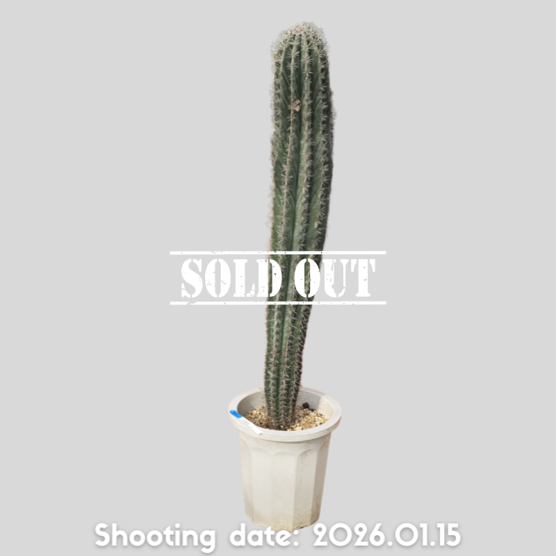 濃緑から灰緑色の肌と長さの揃った刺を持つ美しい柱サボテンです