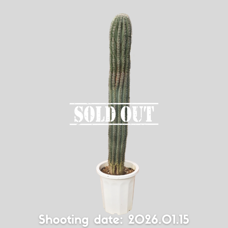 濃緑から灰緑色の肌と長さの揃った刺を持つ美しい柱サボテンです