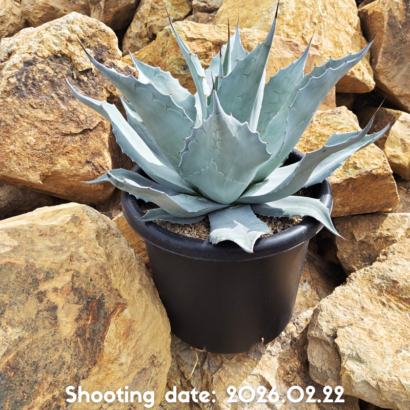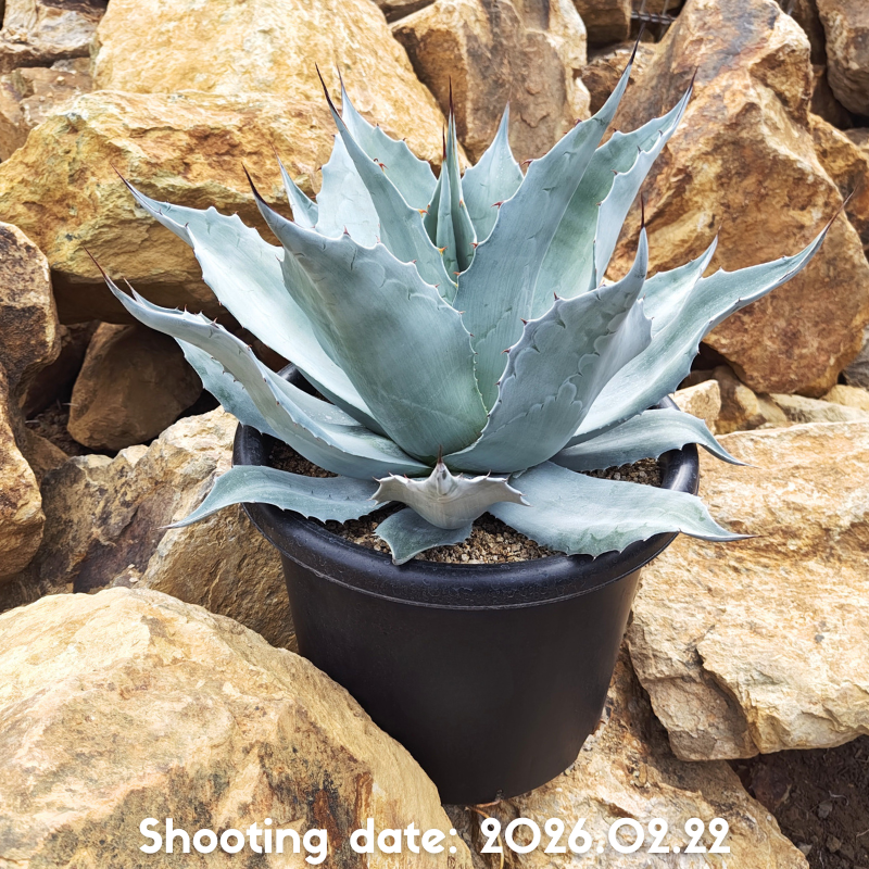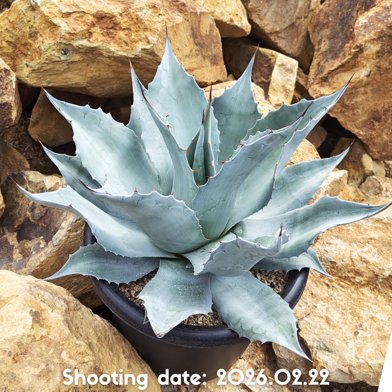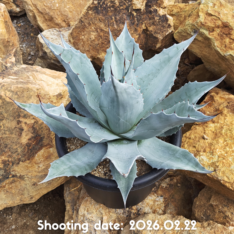 霜が降りたような白みがかった青色の葉が特徴のアガベです