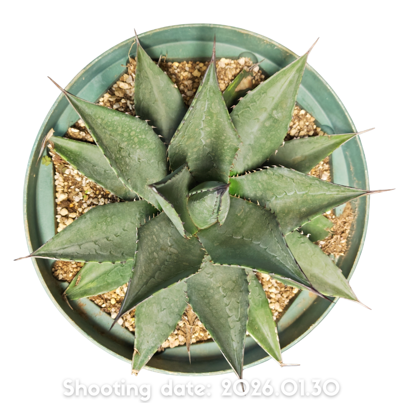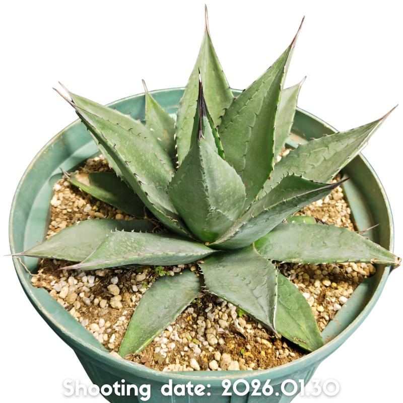 オバティフォリアとビクトリアレギネの交配種で鋸歯は小さく黒い先端の棘とウォーターマークがしっかりつくのが特徴です