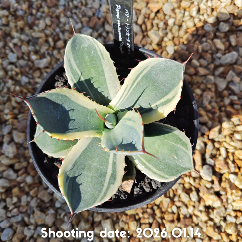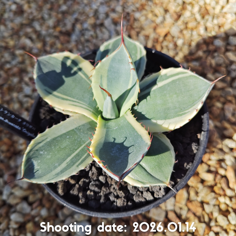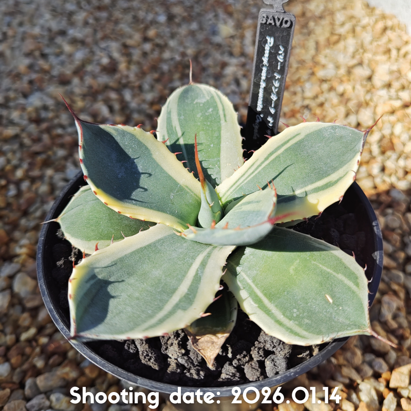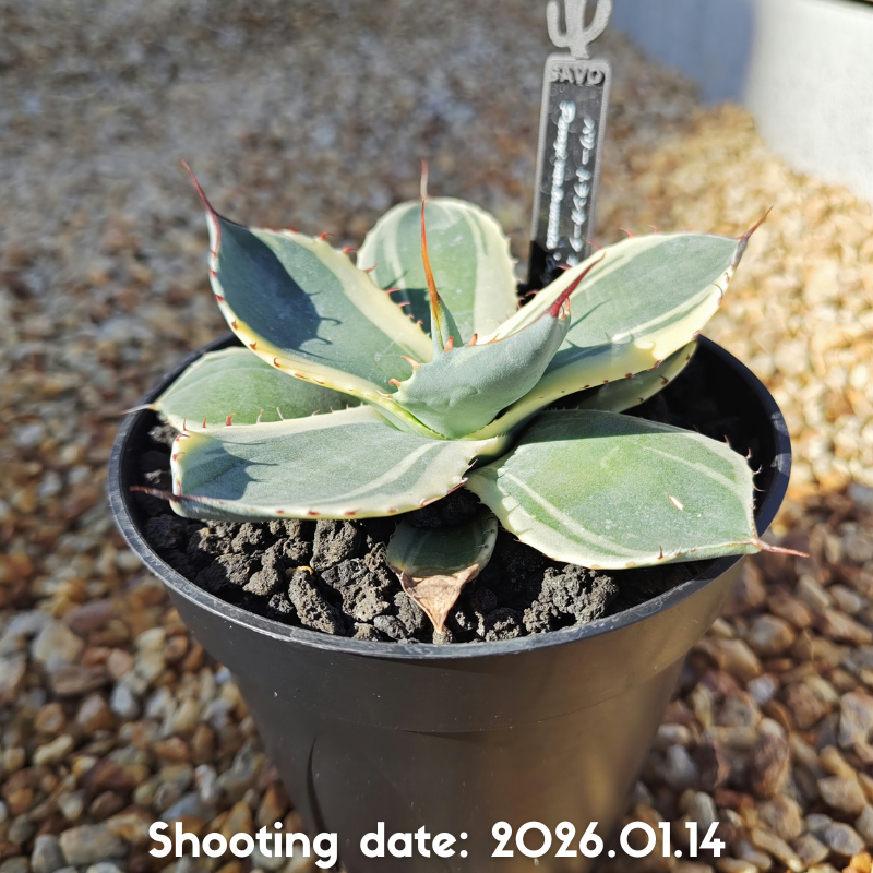白から黄色掛かった明瞭な斑が特徴のアガベです