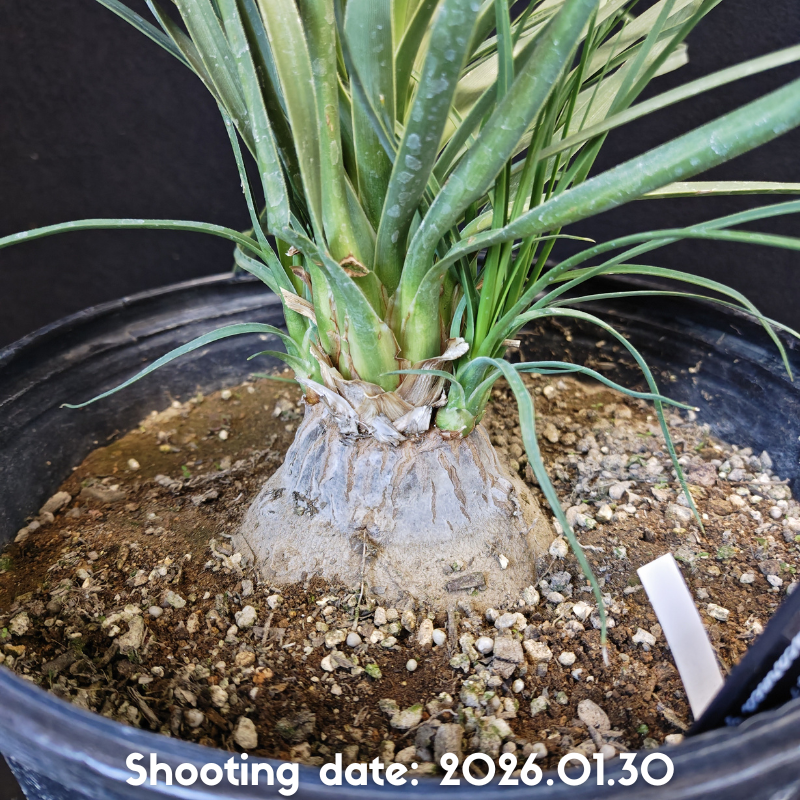 トックリランの仲間で丸く膨れ上がる幹から密集して生えるブルーリーフが特徴です