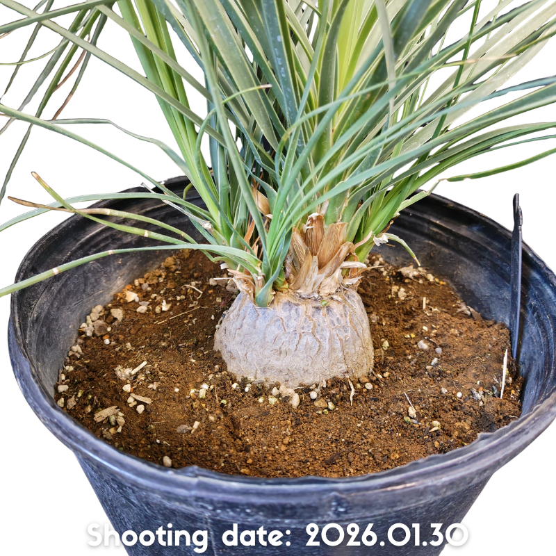 トックリランの仲間で丸く膨れ上がる幹から密集して生えるブルーリーフが特徴です