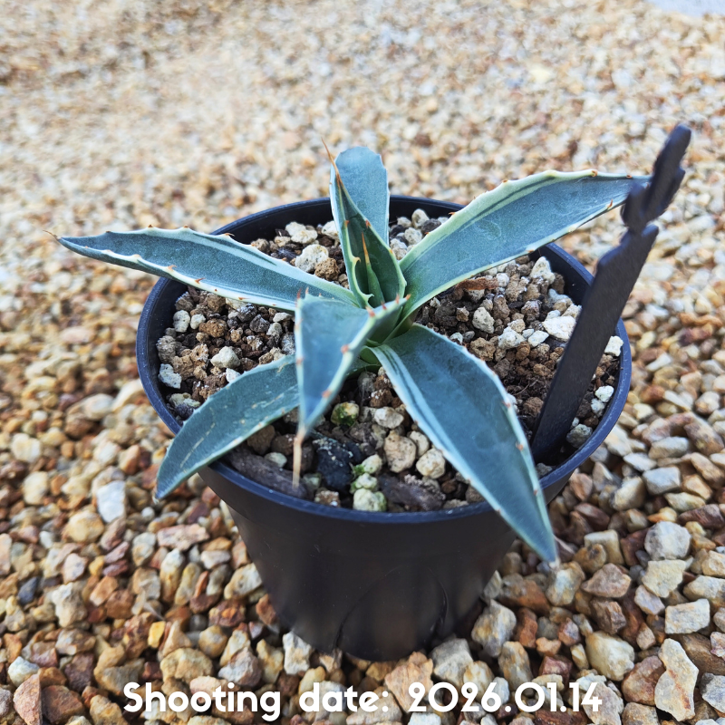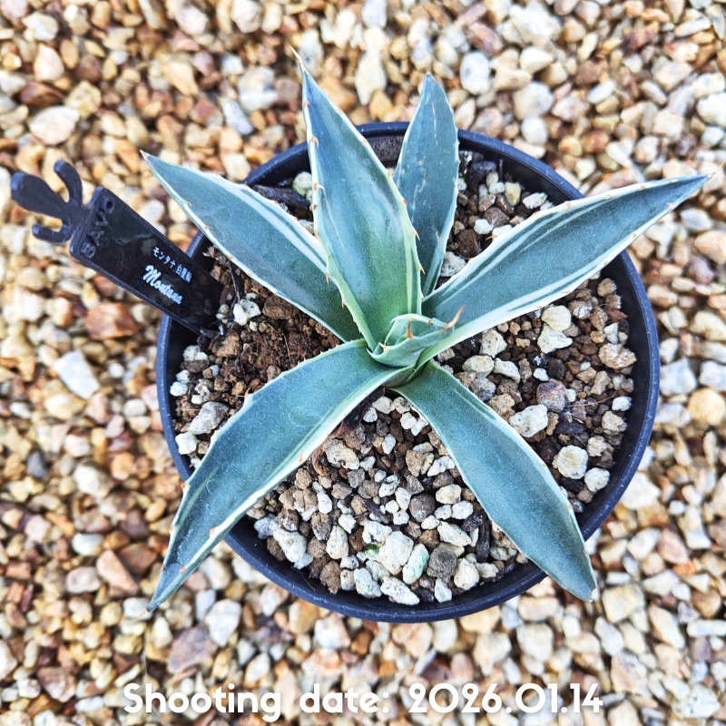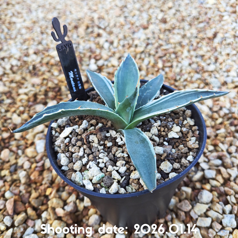 斑入りのモンタナで白覆輪が入っているのが特徴のアガベです