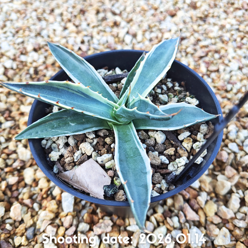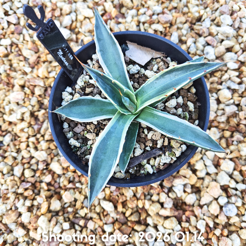 斑入りのモンタナで白覆輪が入っているのが特徴のアガベです