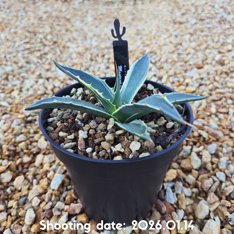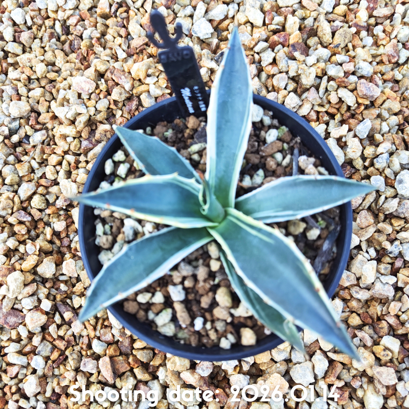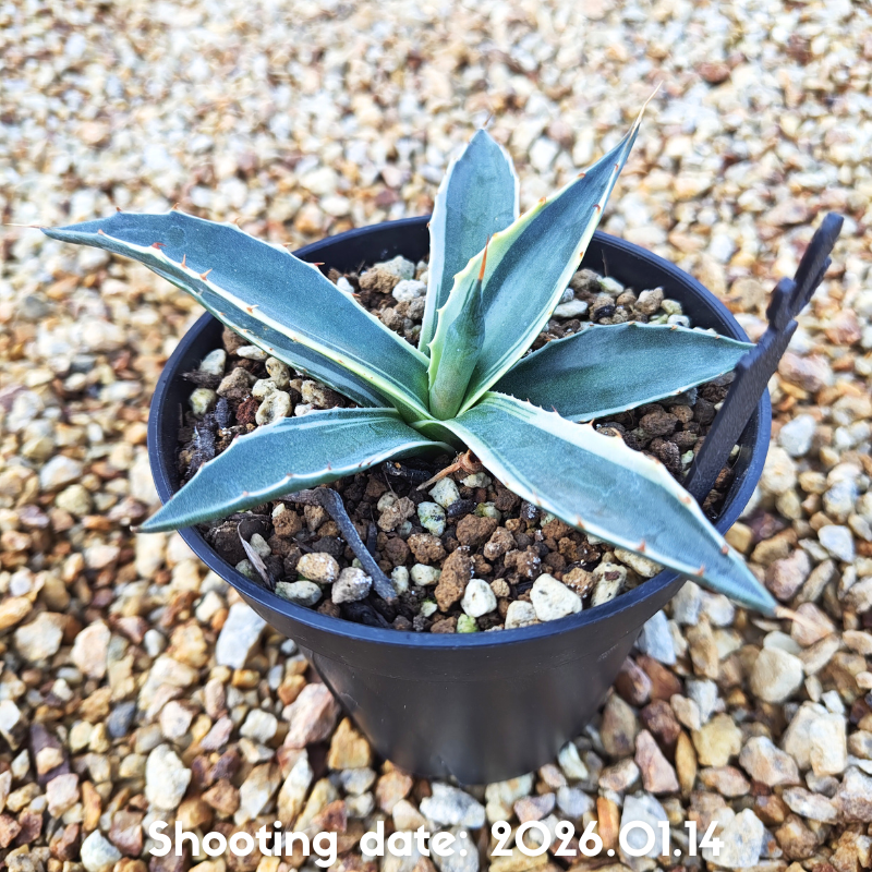 斑入りのモンタナで白覆輪が入っているのが特徴のアガベです