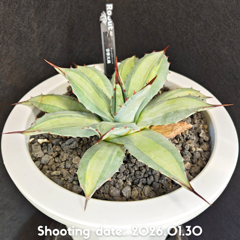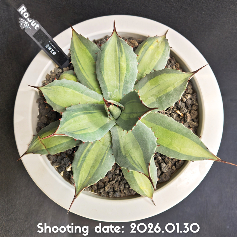 吉祥天よりやや緑色が強く葉の周囲は深緑色で中斑の明るい緑との美しいコントラストが特徴です